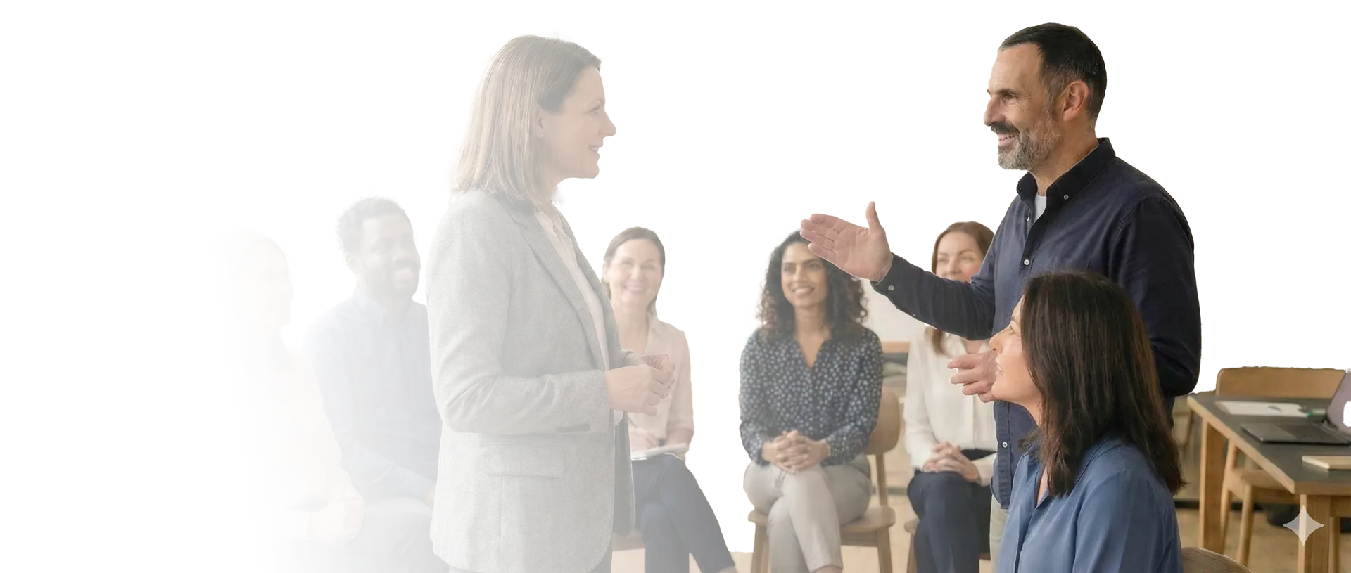 Your team explores and rehearses real conversations and presentations. With accredited coaches, proven techniques, real practice.